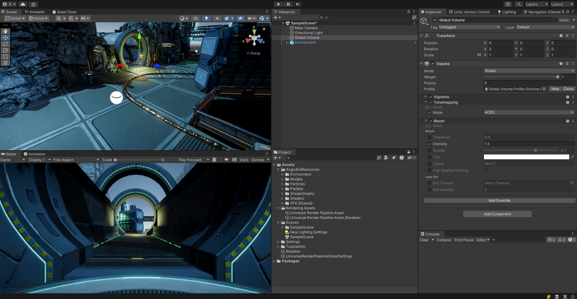 톤 매핑과 블룸 포스트 프로세싱 효과를 추가해보자.