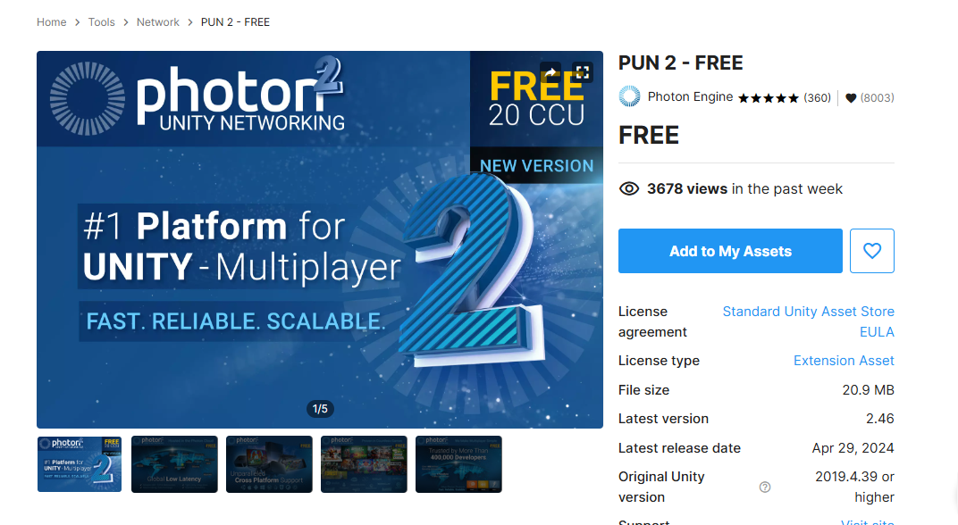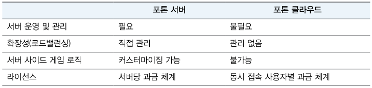 포톤 네트워크 게임 엔진은 이미 성능이 검증됐고 수많은 레퍼런스를 보유하고 있다. 무엇보다 유니티 엔진에 친화적이라 유니티 개발자가 선호하는 네트워크 게임 엔진 중 하나이다. 포톤은 다양한 제품군을 보유하고 있으며 그 중에서 유니티 엔진에 특화된 PUN (Photon Unity Networking)의 경우 20명의 동접자까지는 무료로 사용할 수 있다.