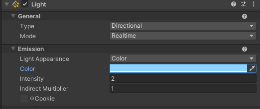 Directional Light를 아래와 같이 설정해준다.
