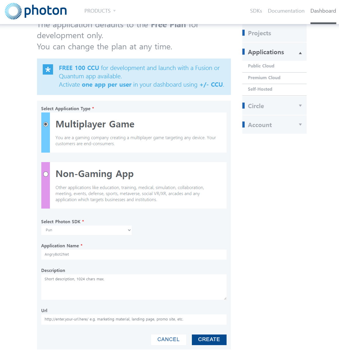 새 어플리케이션을 생성해준다.