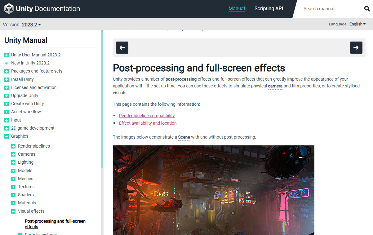 Post-Processing에서 제공하는 다양한 효과는 공식 문서를 참고하자.