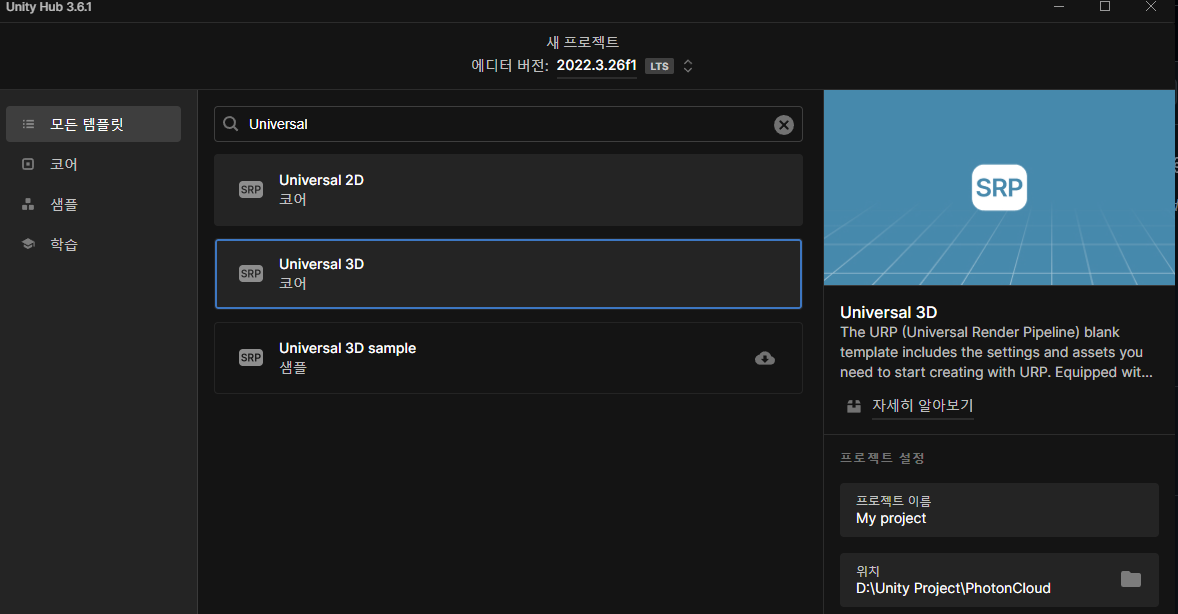 포톤 클라우드를 하기 전에 URP 프로젝트를 세팅해보자.