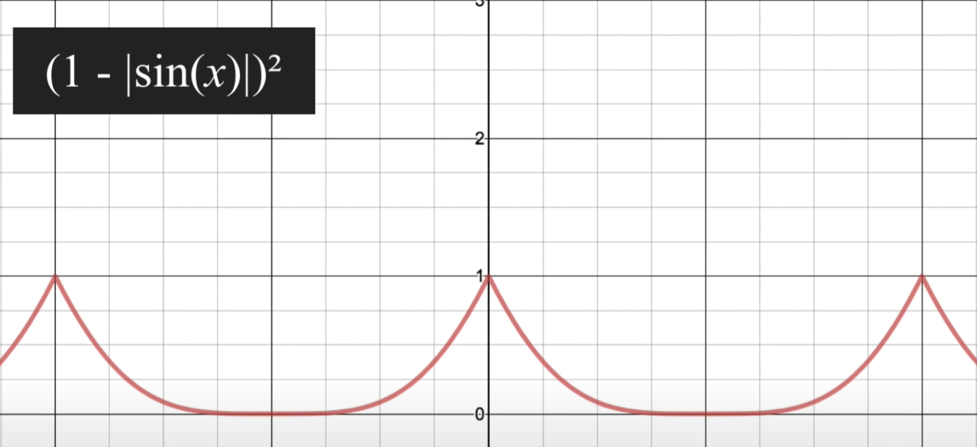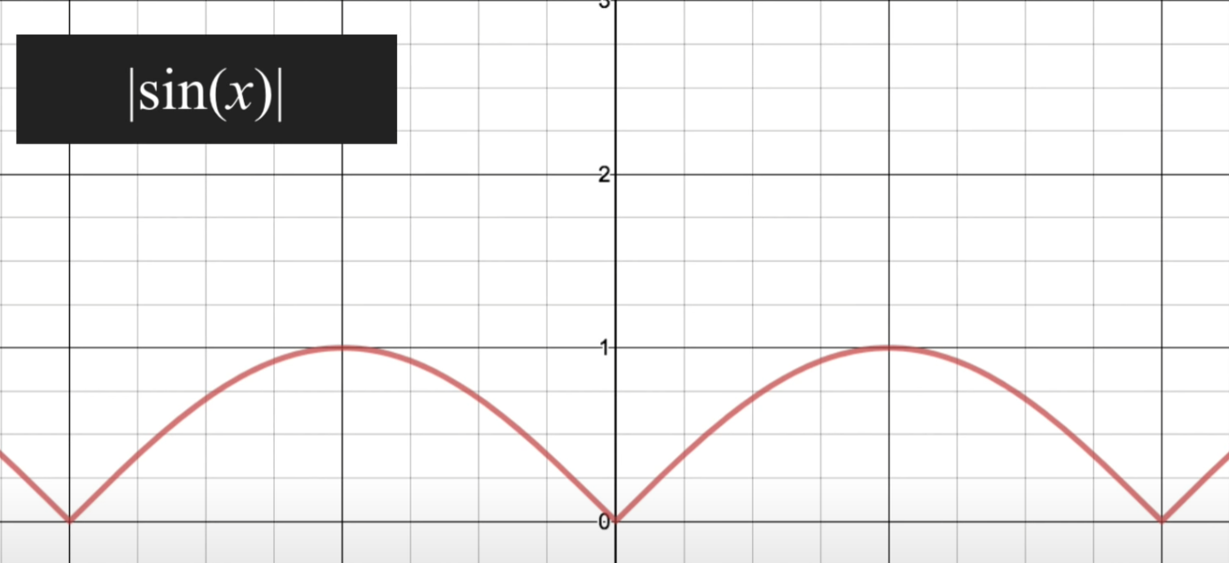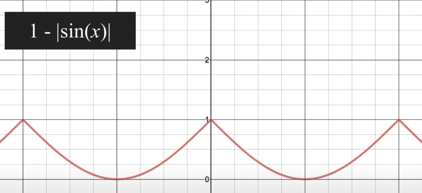 처음 만들 노이즈 필터는 꼭대기가 뾰족한 산과 비슷한 노이즈 필터를 만들어보자. sin 함수를 아래와 같은 과정을 통해 꼭대기가 뾰족한 산과 같은 그래프 형태를 만들 수 있다.