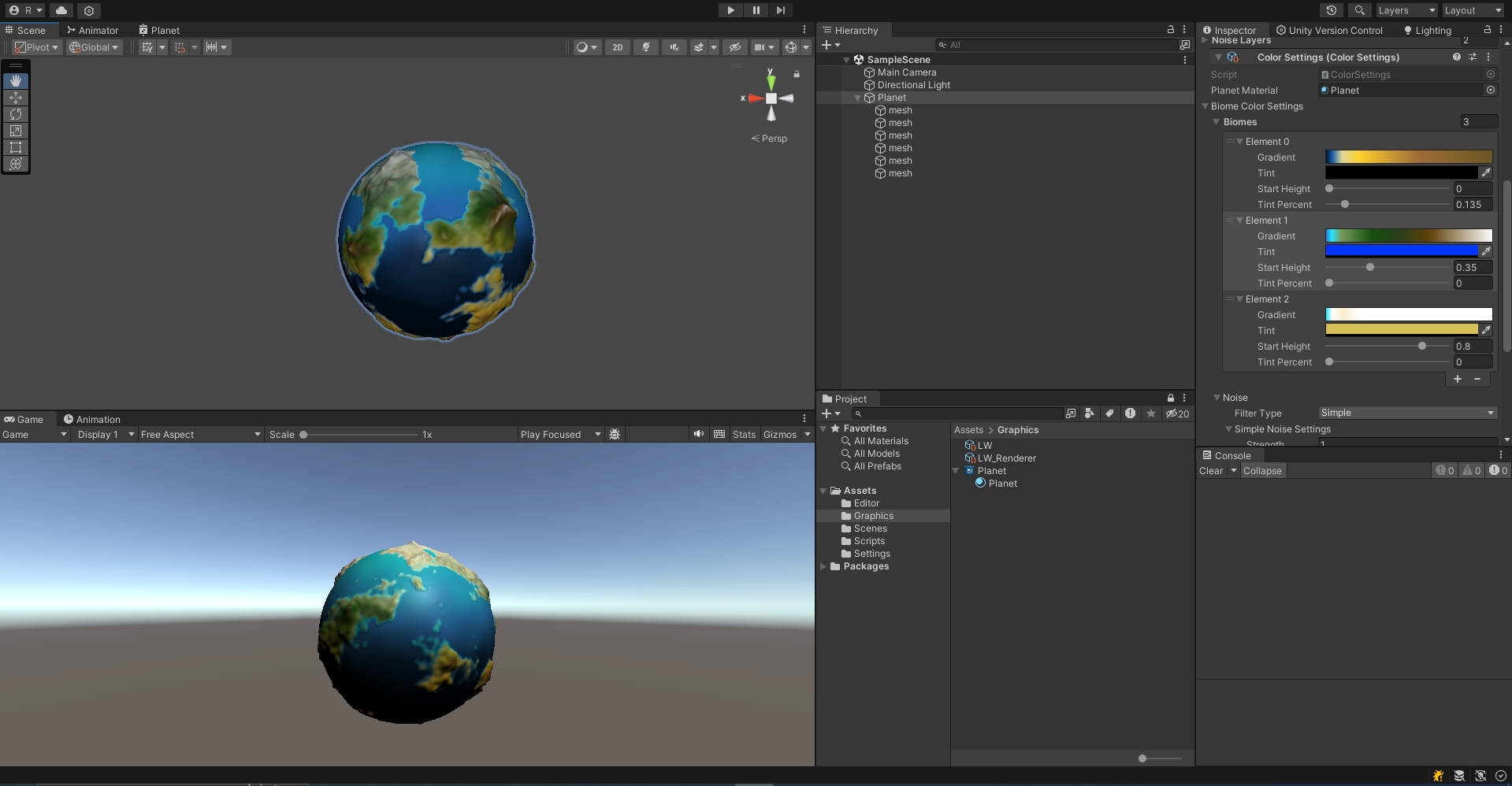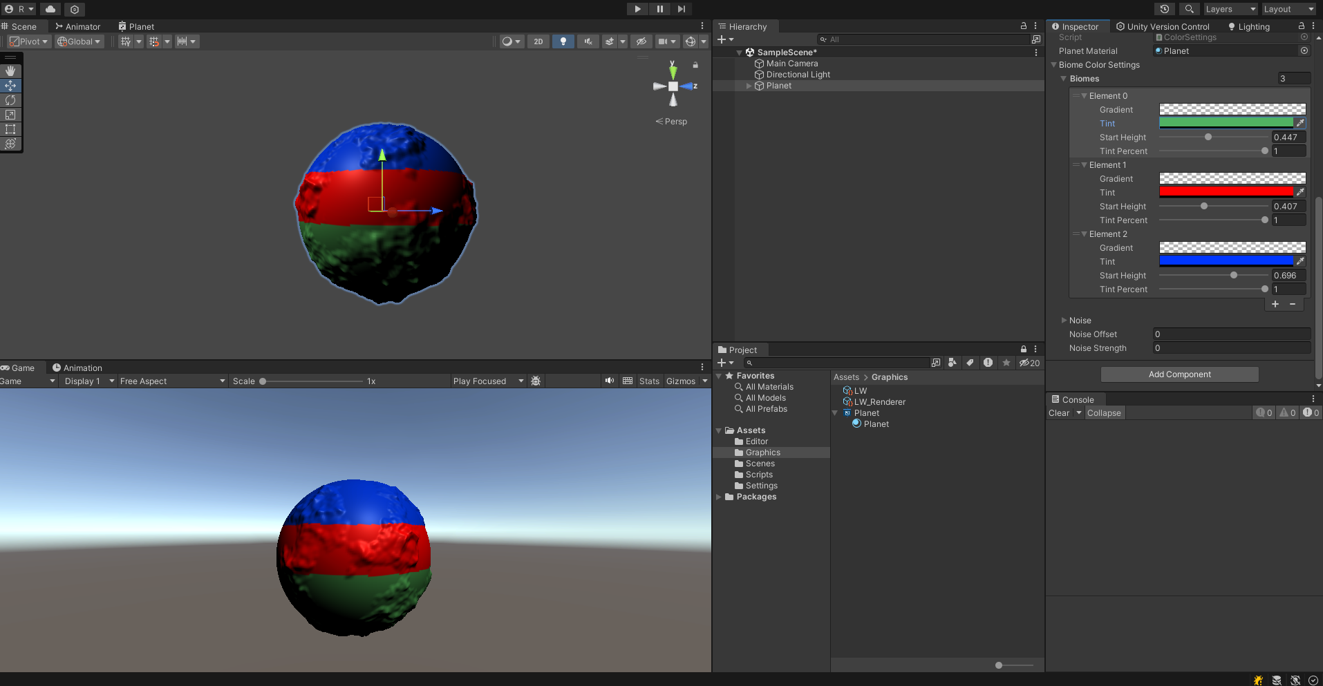 이제 위도별로 biome을 생성해주고 biome 별로 Gradient에 따른 색상을 적절히 조절해보자.