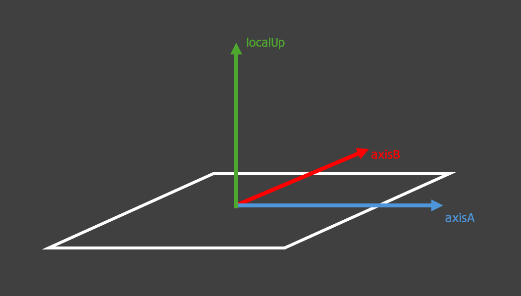 localUp은 지표면이 어디를 향하는지를 나타내는 벡터이다. localUp으로 axisA와 axisB를 구해준다.