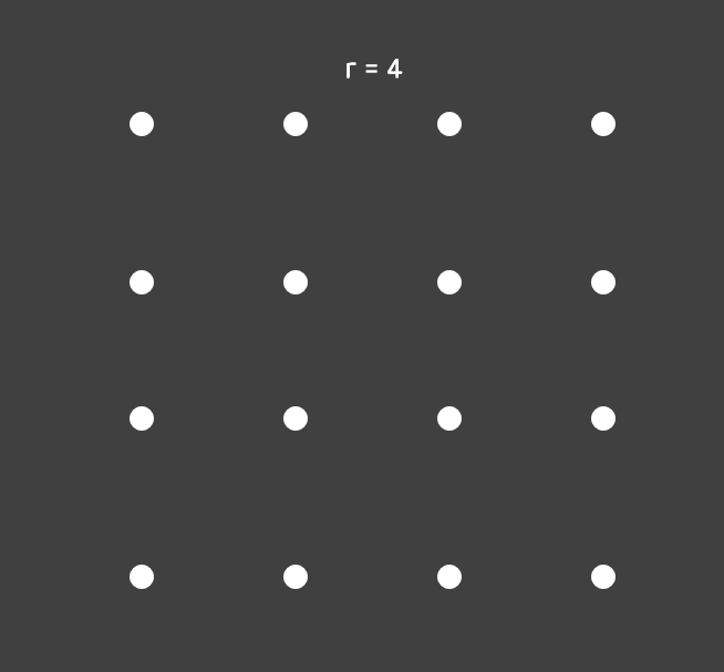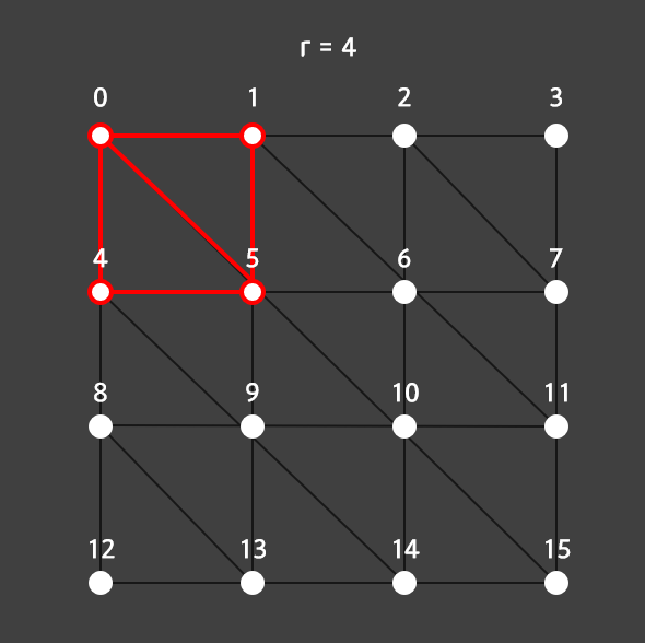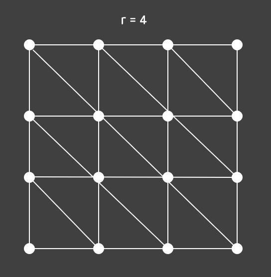 해상도(resolution)인 r = 4라고 할 때 다음과 같이 정점을 16개, r의 제곱 만큼 만들어준다.