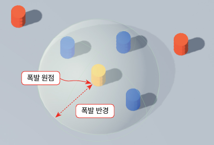 일단 폭발을 영향을 줄 사물들끼리 같은 레이어에 위치시킨다. (여기서는 BARREL 레이어에 모두 위치시킴) 그 다음에 Physics.OverlapSphere로 겹치는 오브젝트 콜라이더를 모두 가져온 다음에 폭발 영향을 준다.