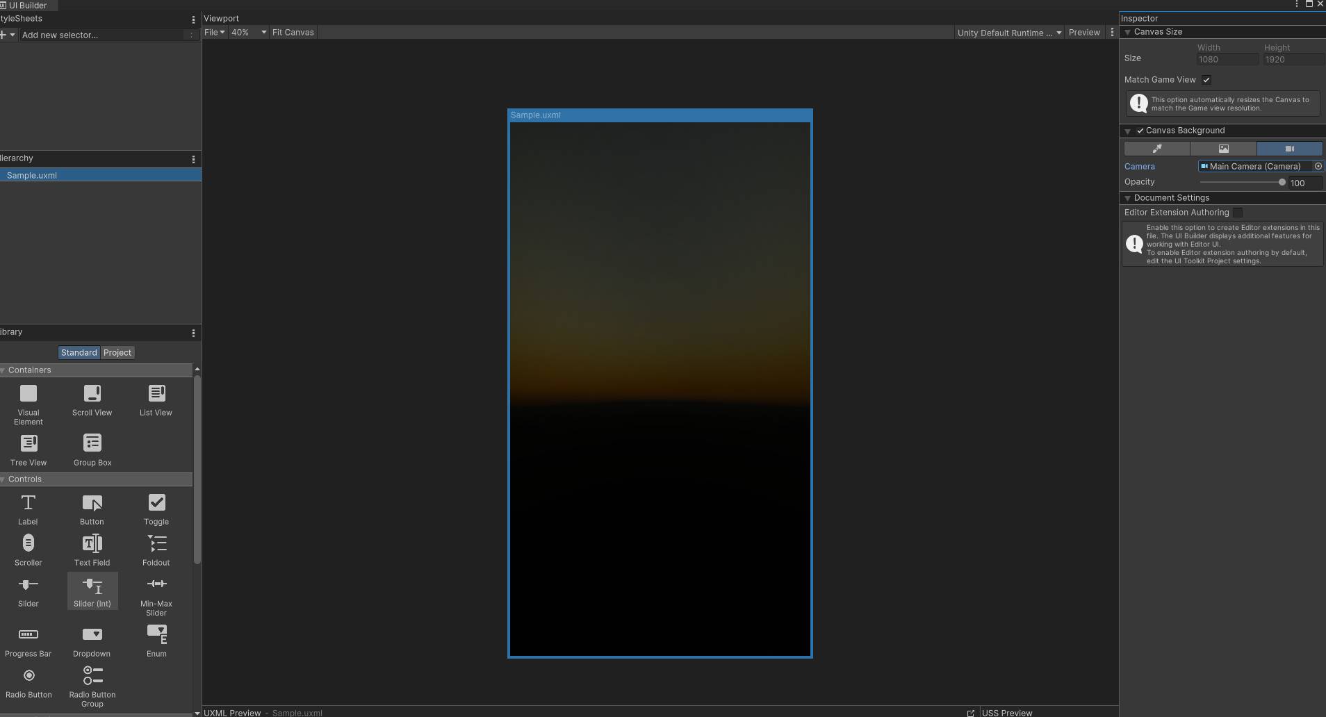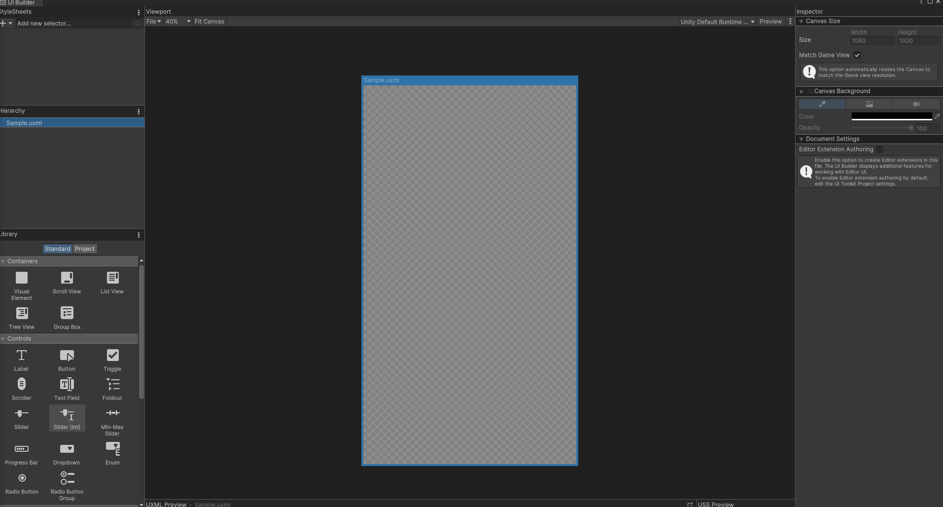 이제 uxml을 더블 클릭해서 UI Builder를 열어보자.