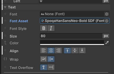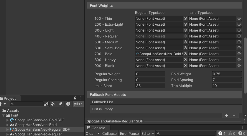 그런 다음 Regular Font Asset의 Font Weight에 Bold Font Asset을 연결해준다.