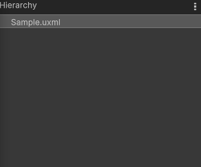 좌측의 Hierachy 셉션을 보면 uxml 파일이 있는데, 해당 부분이 UI의 계층 구조를 보여주는 곳이다. 에디터의 하이어라키와 다른 점은 게임 오브젝트가 아닌 UI를 구성하는 요소만 나열된다는 것이다.