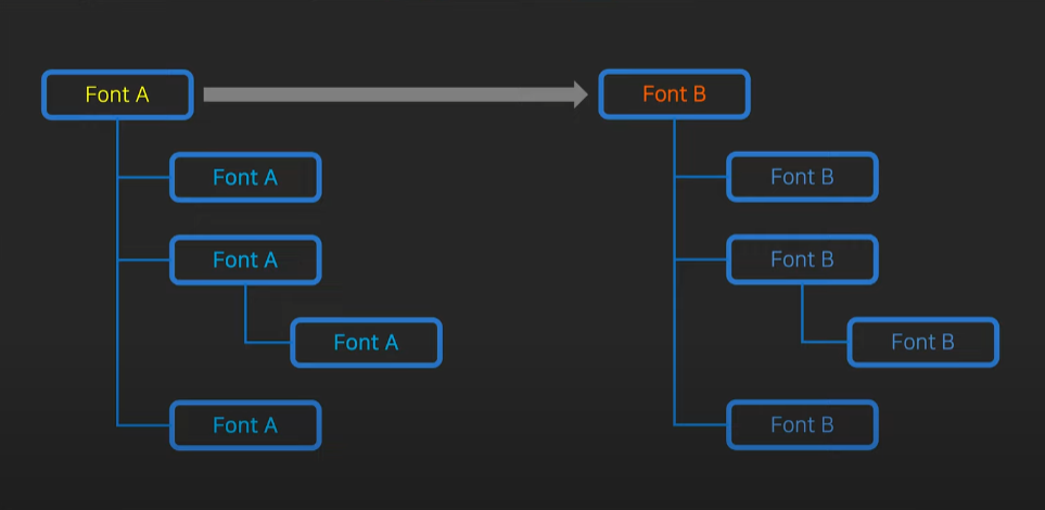 이 방식 외에도 가장 상위의 Visual Element를 고르고 Font Asset을 적용해도 하위에 있는 모든 자식 Element의 Font가 동일하게 바뀐다.