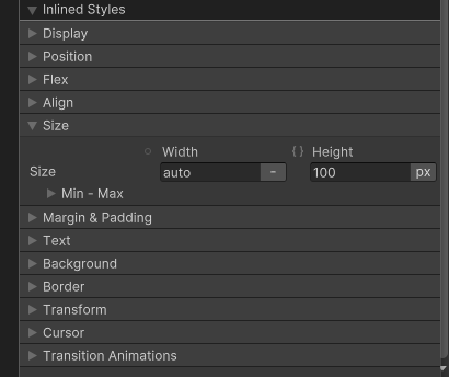 버튼의 경우 부모 VisualElement를 100%, 240px로 Size를 설정해준다.