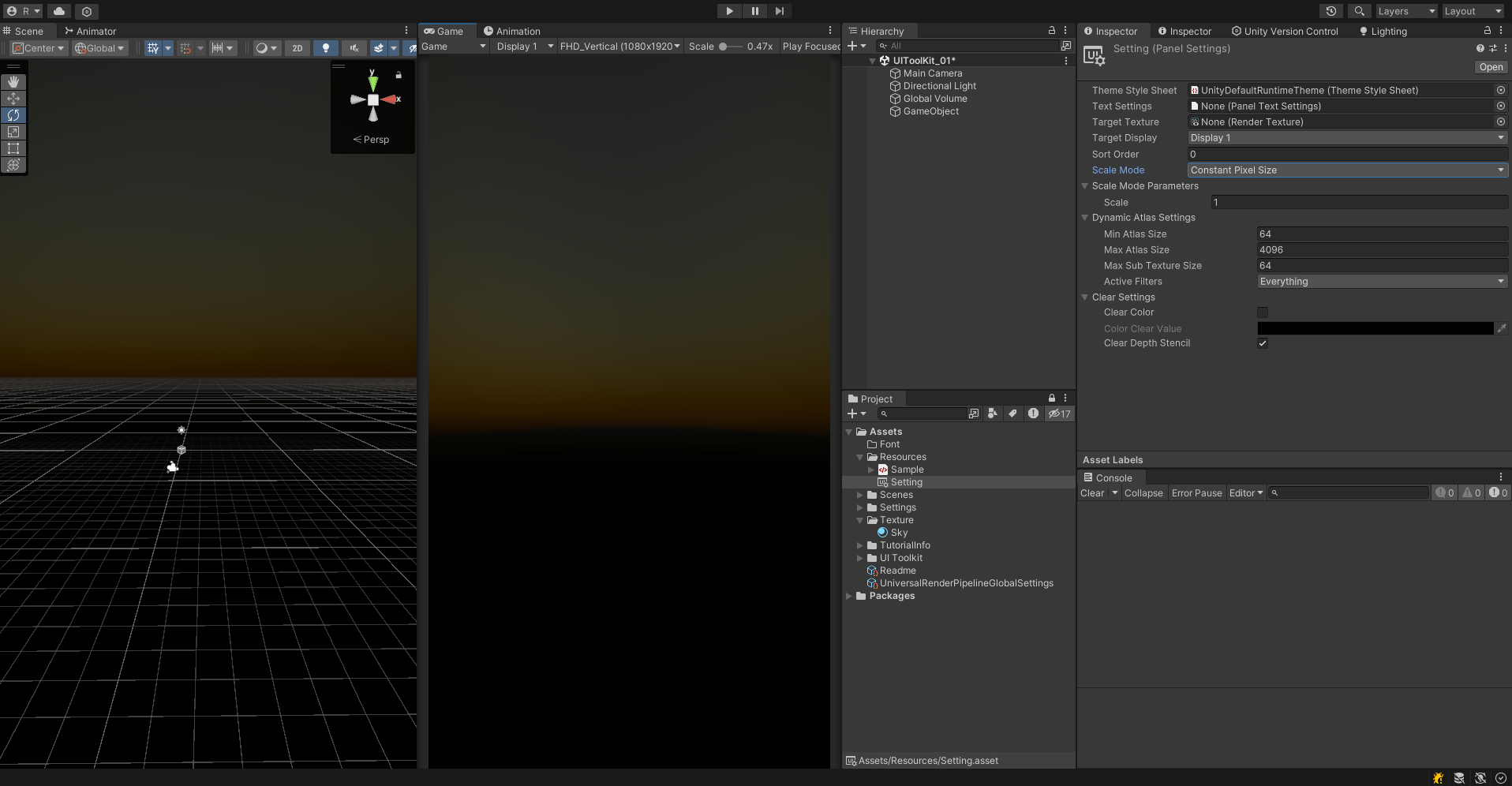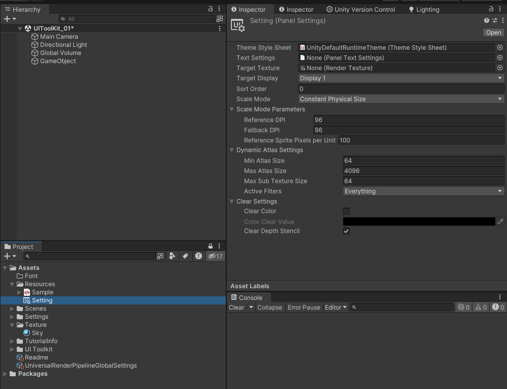 Panel Setting도 만들어보자. Create > UI ToolKit > Panel Settings Asset
