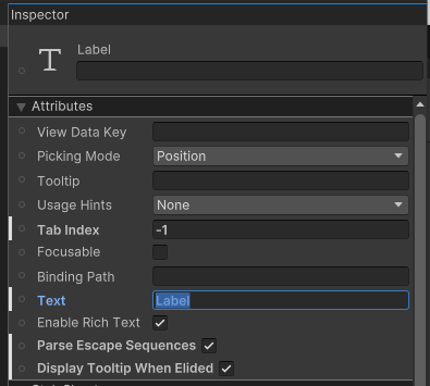 Label의 텍스트는 Attributes > Text에서 설정해줄 수 있다.