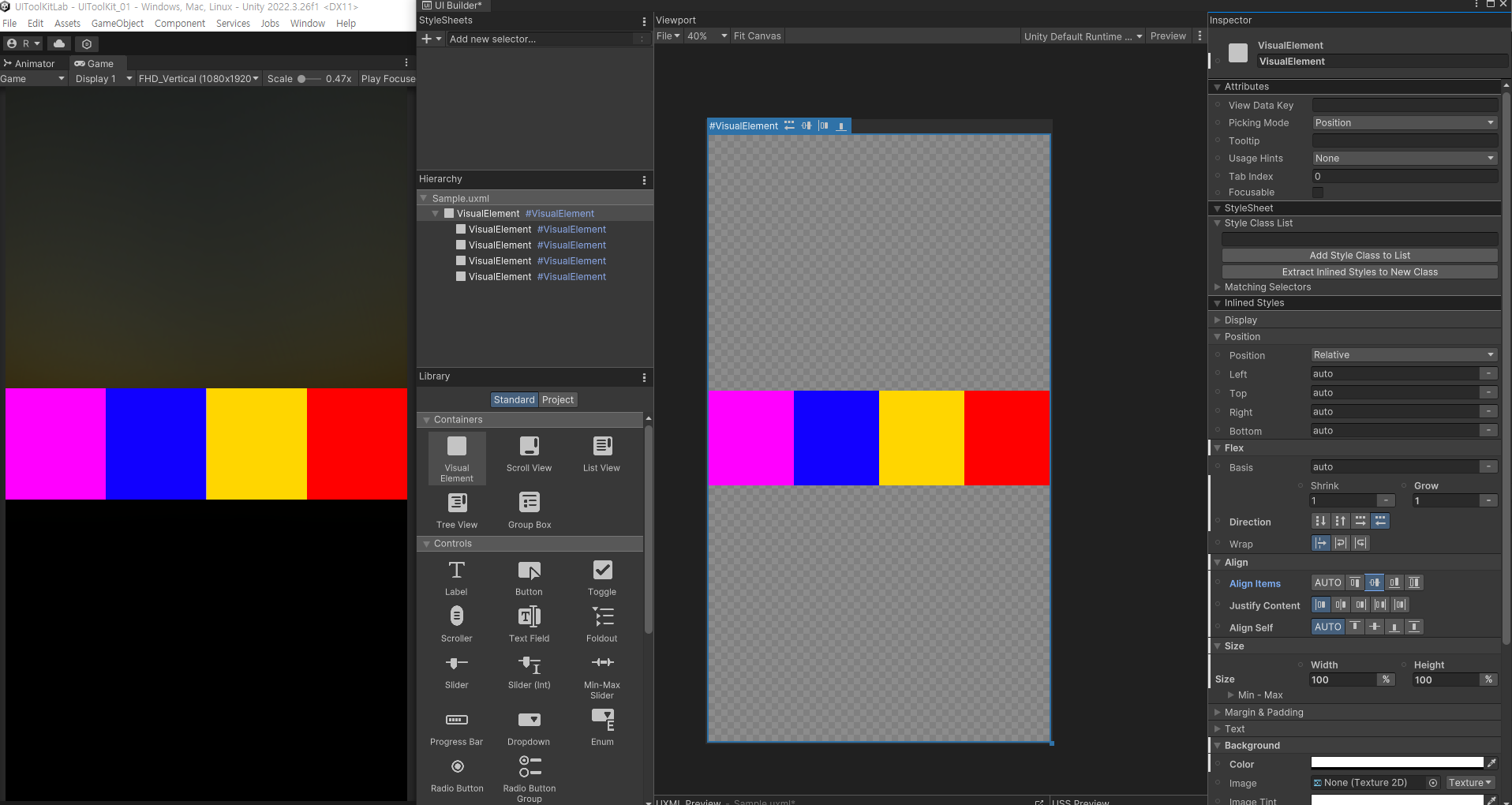기본적으로 UI Tool Kit은 Flex를 이용해서 다양한 해상도에 대응하는 반응형 UI를 만들게 된다.