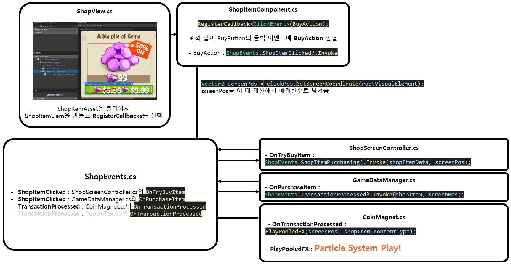 참고로 ShopEvents의 TranscationProcessed에는 CoinManget뿐만 아니라 PopUpText.cs의 OnTransactionProcessed도 붙어있다. (나중에 한 번 보도록 하자)
