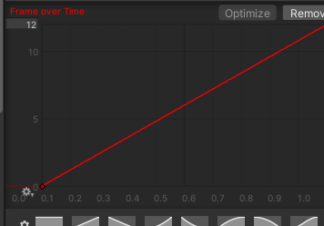 총 12장 스프라이트가 있기 때문에 y값을 보면 12까지 직선 그래프로 증가하도록 돼있다. 즉, 한 번 사이클 동안 0~11번의 스프라이트가 변경된다는 뜻이다.