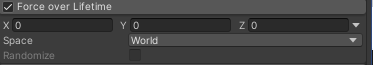 이 모듈에서 설정된 힘에 의해 가속화 될 수 있다. 이 때 Space는 힘이 로컬 공간에 적용될지 월드 공간에 적용될지 선택한다.