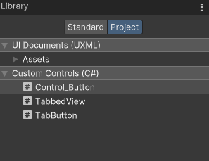 이제 Text.uxml을 하나 만들어주고 들어가보면 Project탭에서 Control_Button을 만들어줄 수가 있다.