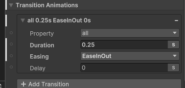 background--normal 스타일을 눌러 Transition Animation을 설정해준다.