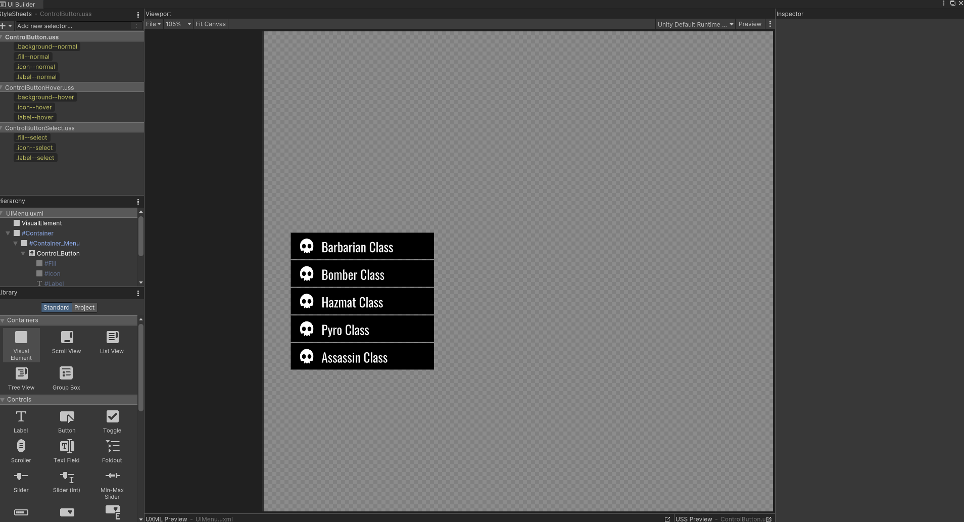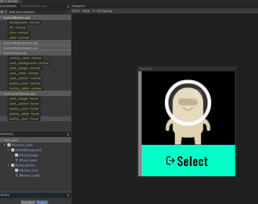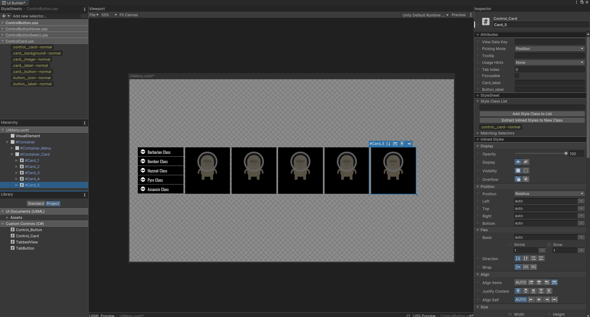 이제 인스펙터로 Control Buttons를 초기화해주면 자동으로 Card-1,2,3,4 스타일이 추가되면서 카드가 숨겨진다.