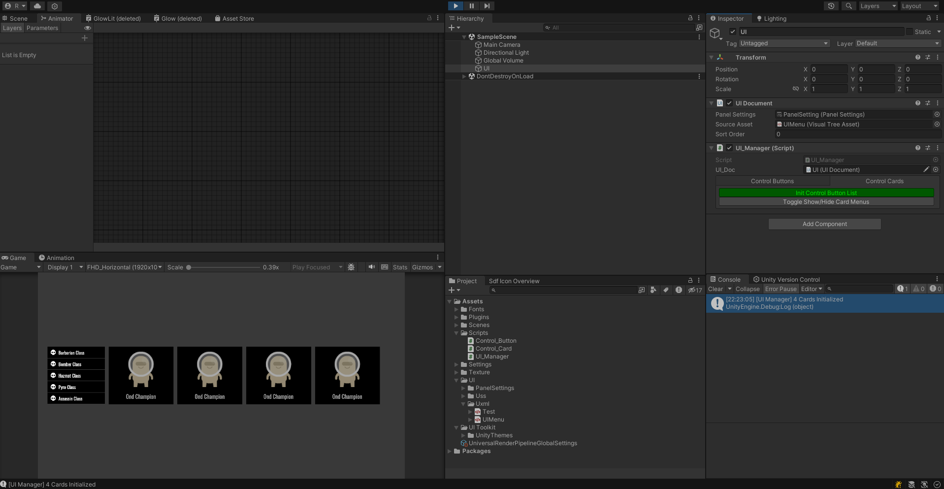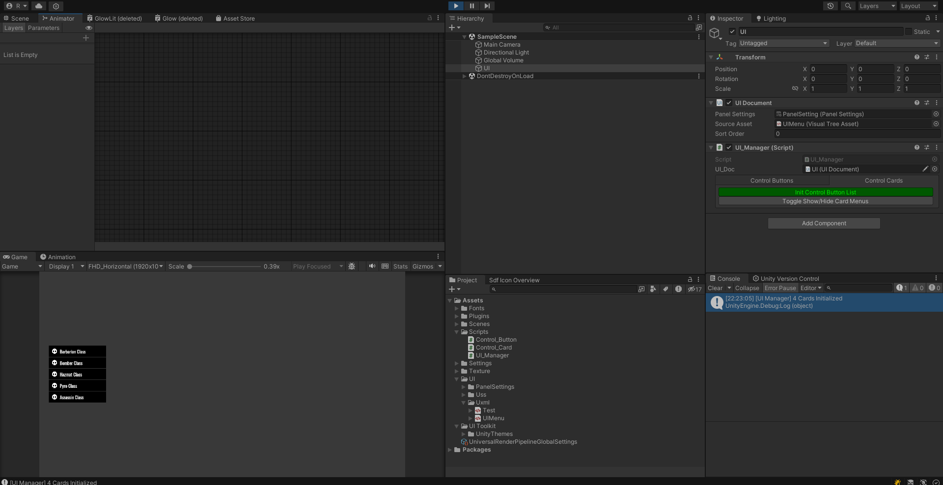 카드 메뉴를 관리할 UI Manager로 합쳐서 작성해보자.