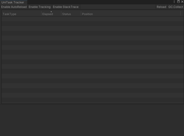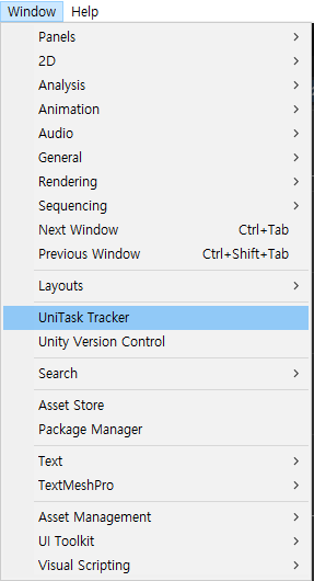 Task Tracker를 통해 씬에서 실행되고 있는 Task를 확인할 수 있고 이를 통해 어떤 Task가 어디에서 실행되고, 종료되고, 어디서 메모리 누수가 발생하고 있는지를 추적 관리 할 수 있다.