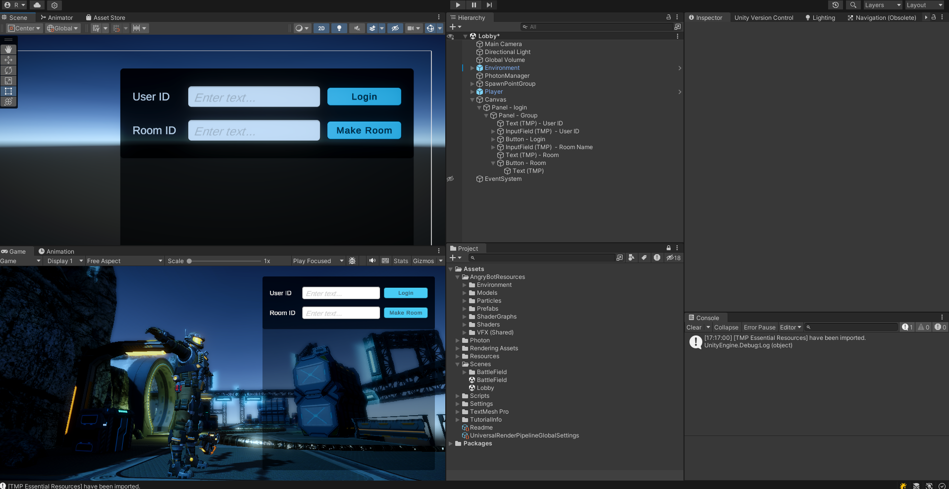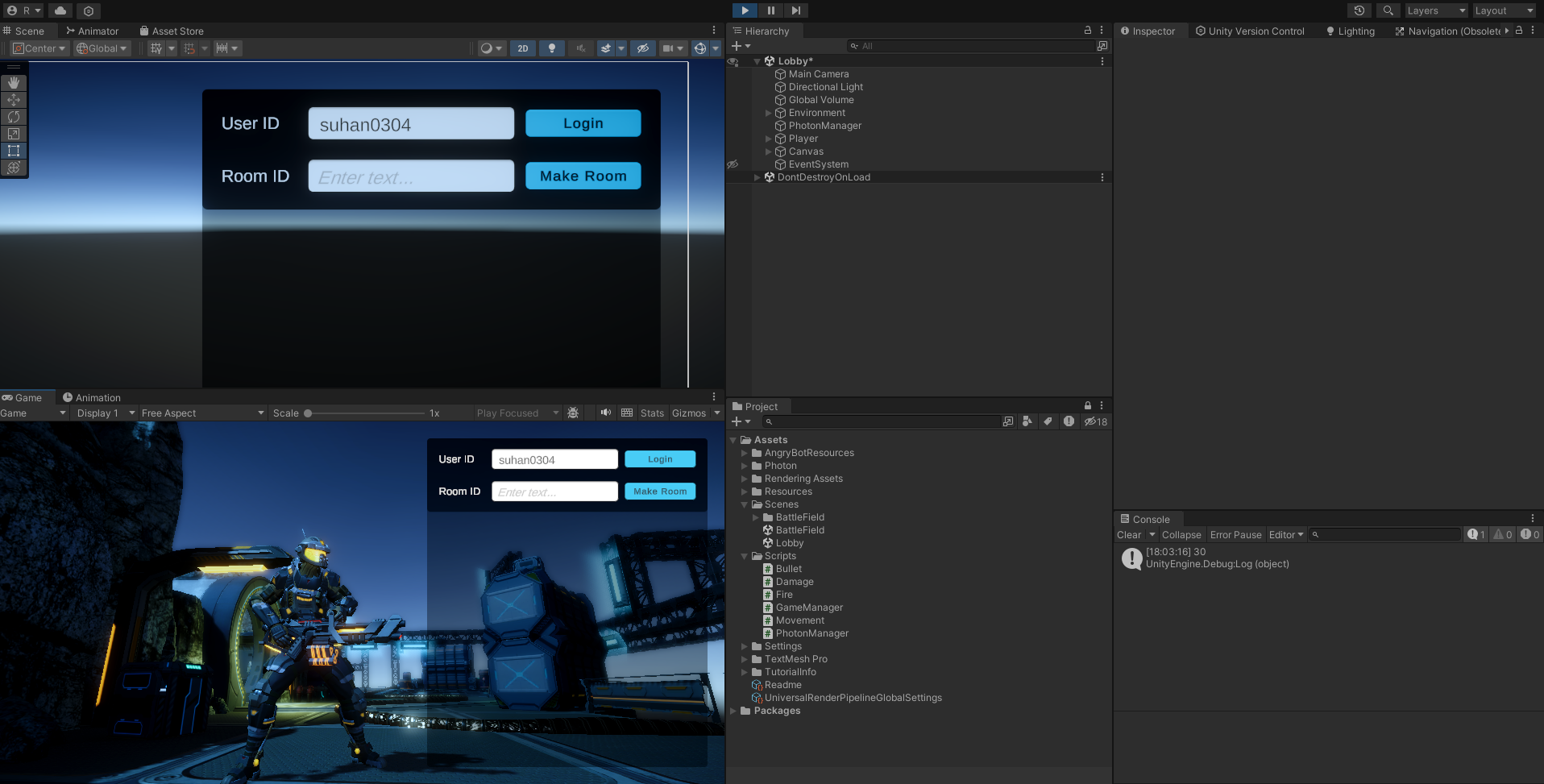 현재 씬을 BattleField로 저장한 후에 Lobby로 하나 복제해준다.