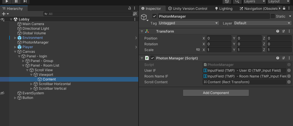 이제 PhotonManager 스크립트를 아래와 같이 수정한다.