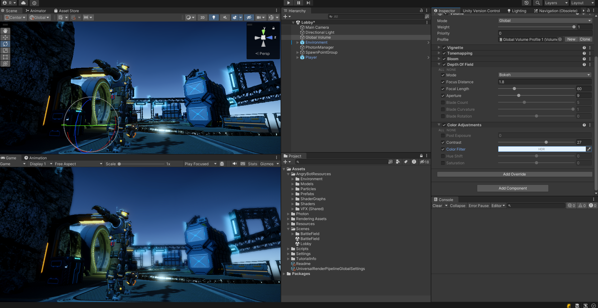 기존 Profile을 clone해서 새로 만들어준 후에 Depth Of Field + Color Adjustments를 추가해준다.