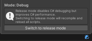 유니티 에디터 좌 하단에 있는 디버그모드 에러를 고치면 문제를 해결할 수 있다.