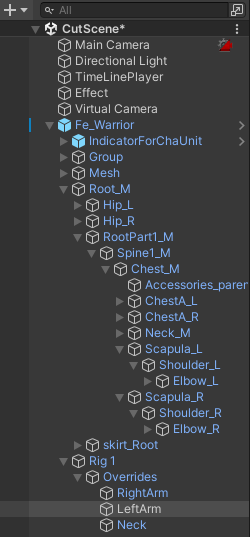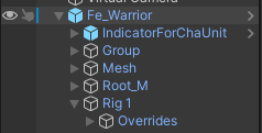 자동으로 생긴 Rig1 게임오브젝트의 자식오브젝트로 빈 오브젝트 Overrides를 추가한다.