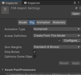 그럴 때는 해당 캐릭터의 프리펩부분에서 Rig를 확인해보면, Configure버튼이 있다.