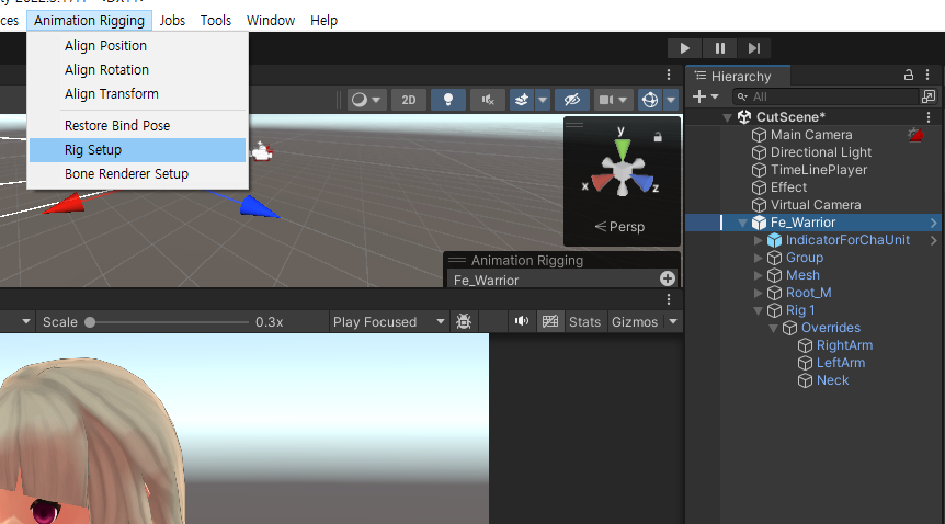 적용할 캐릭터의 프리펩의 최상위 오브젝트를 누르고 RigSetUp을 메뉴에서 고른다.