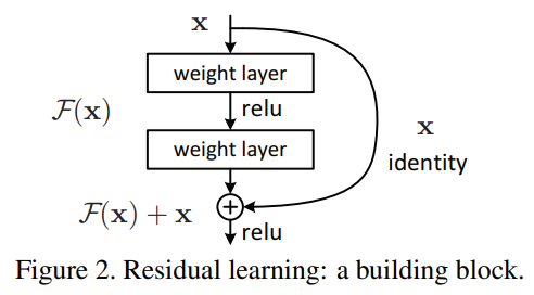 극단적으로 identity mapping이 최적의 해라고 했을 때, 함수 F가 0이 될 수 있게 하는 것이 학습 난이도가 더 쉽다. 다시말해 H가 x인 경우 즉 우리가 본질적으로 학습시키고자 하는 mapping이 identity mapping일 때, residual 자체가 0이 되도록 학습시키는 것이 더 쉽다.