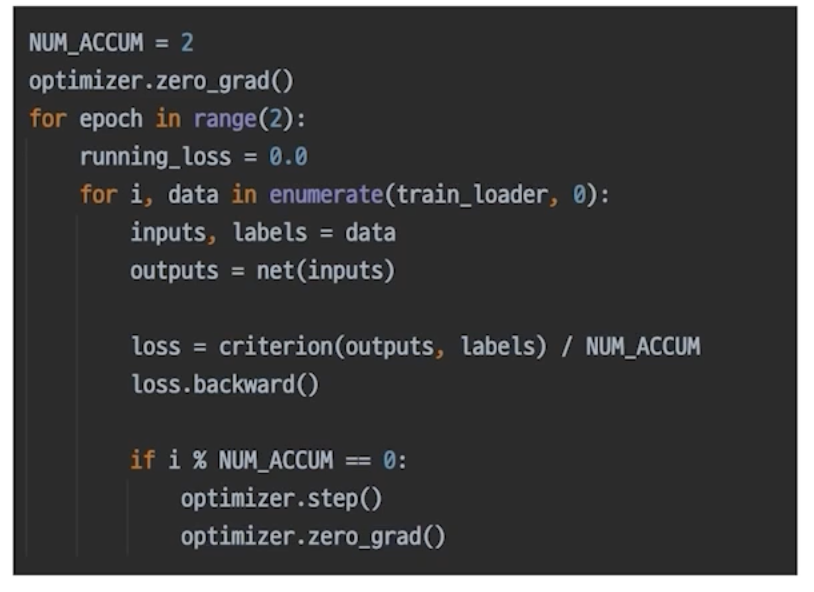 Training Process에 어느정도 익숙해지셨다면 Gradient Accumulation을 내 프로젝트에 적용시켜보세요. 적용한다고 반드시 성능이 올라가는 것은 아닐겁니다. 적용을 했다면 전후 성능 비교를 해봐야겠지요?