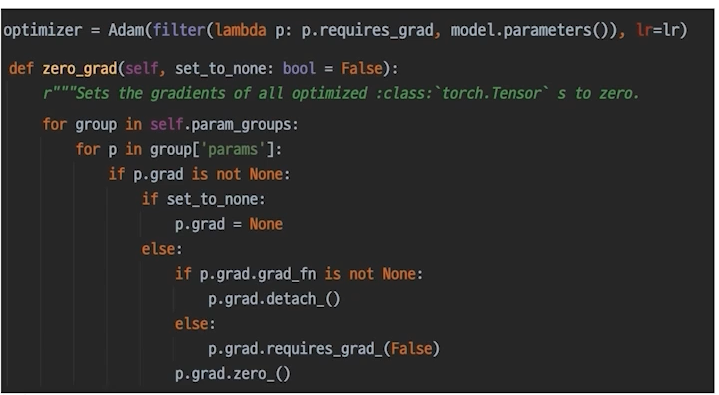 -> optimizer가 파라미터를 가지고 있으므로 optimizer에다가 zero_grad()