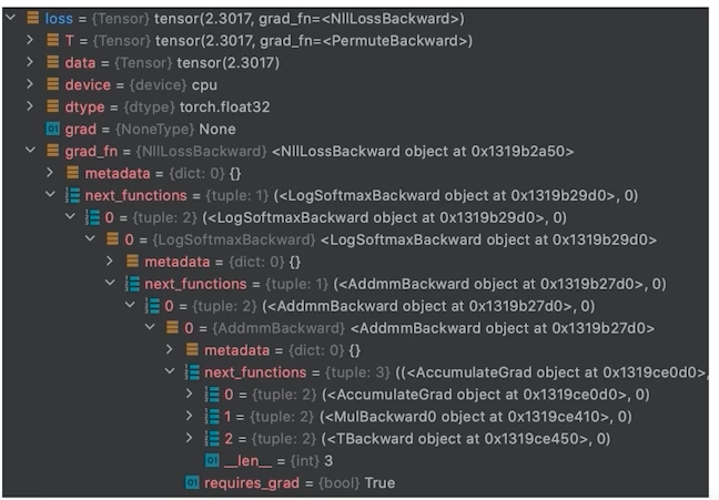 loss의 grad_fn chain -> loss.backward()