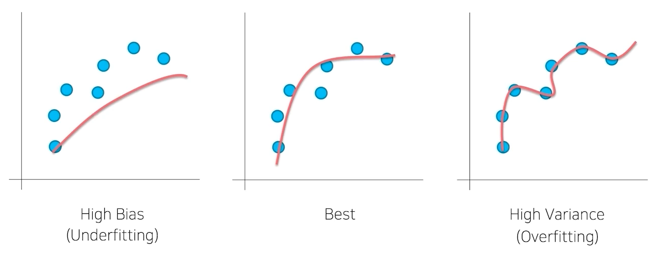 - underfitting: High bias, 너무 데이터를 고려하지 않음