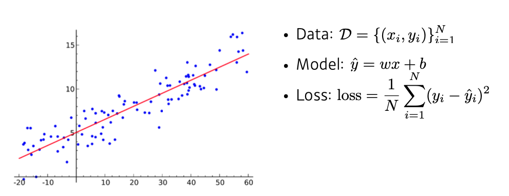 - 먼저 Data가 있을 때, 선형 모델을 설정하고 Loss를 정한다.