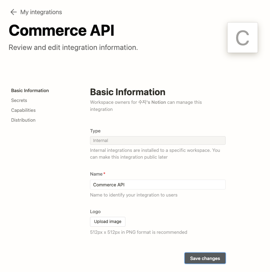Notion 개발자 사이트의 My Integration 페이지로 이동해 integration을 생성합니다.