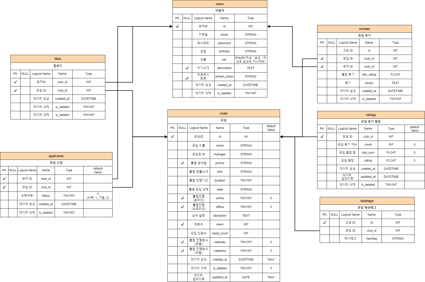 테이블의 관계를 한눈에 볼 수 있도록 잘 정리하면서 스키마를 작성했다
