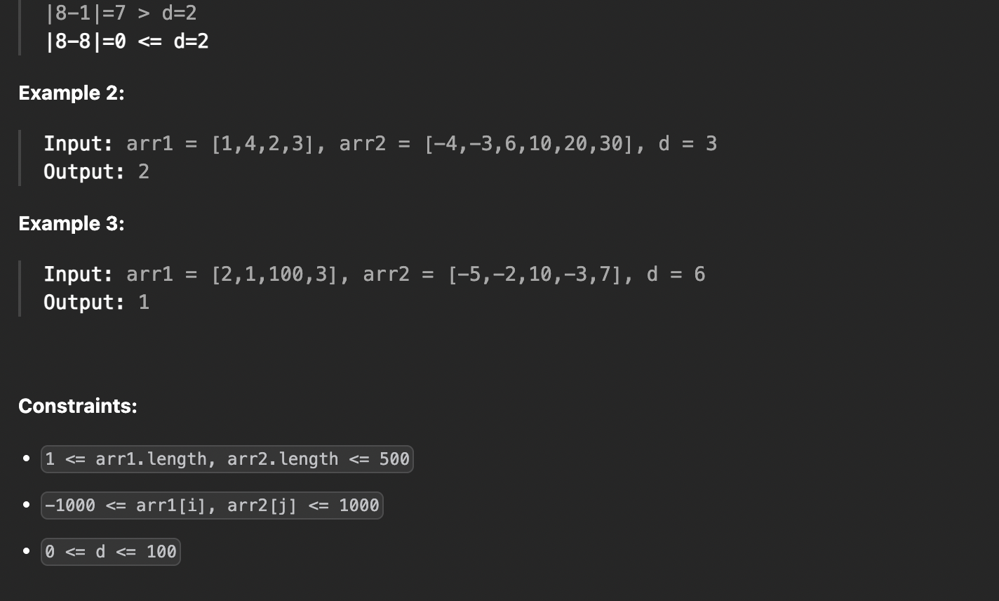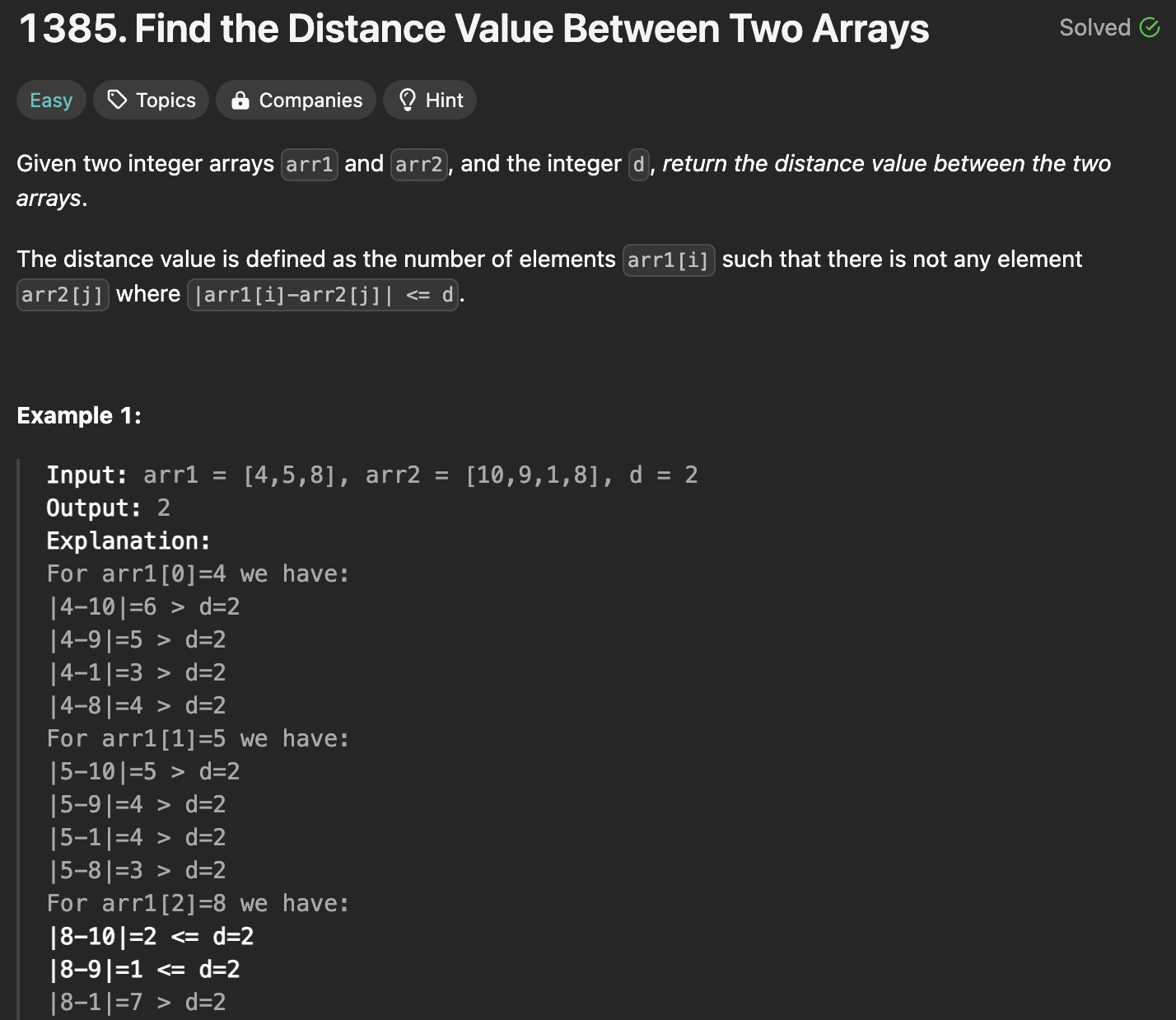 리트코드 1385번 Find the Distance Value Between Two Arrays