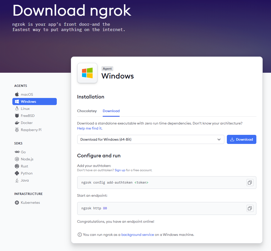 ngrok config add-authtoken $YOUR_AUTHTOKEN