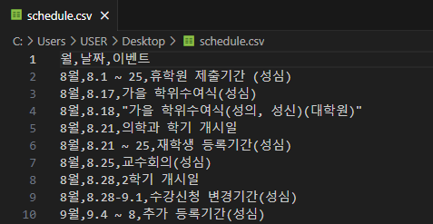 flatFileItemReader.setResource(new ClassPathResource("/csv/schedule.csv")); //읽을 파일 경로 지정
