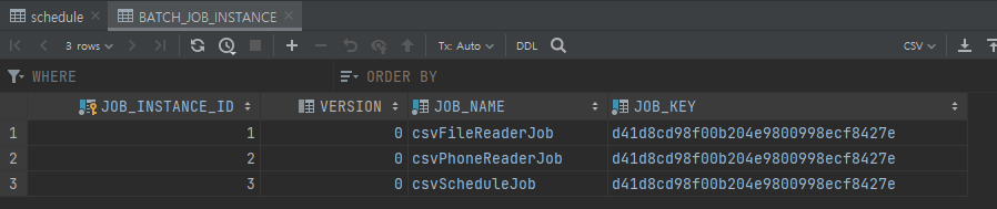 BATCH_JOB_EXECUTION: Job Instance 추가된 것 확인 (3번째)
