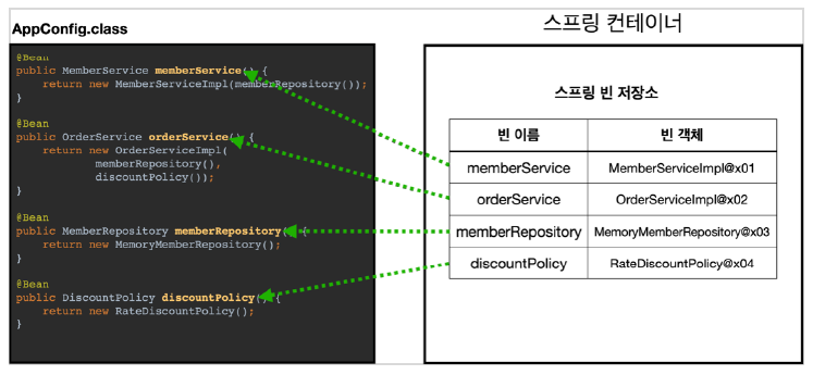 스프링 빈 등록하면 스프링 컨테이너 안에 저장된다.