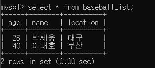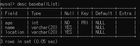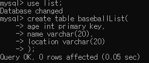 사용할 DB를 지정한 채로 아래와 같이 입력한다.