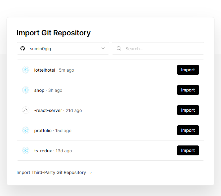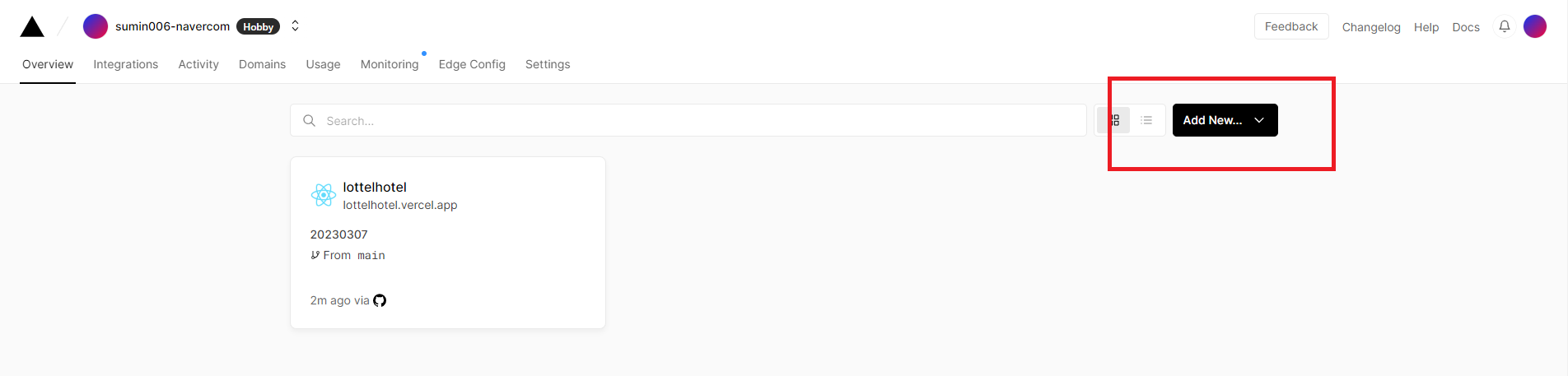 1. vercel에 들어와서 Add New로 새로운 프로젝트 작성