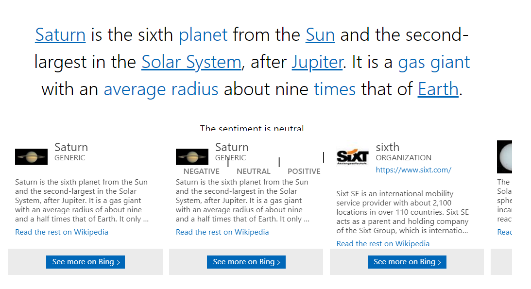 https://aidemos.microsoft.com/text-analytics 에서 데모를 실행할 수 있습니다.
